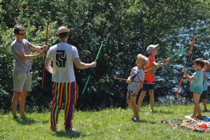 Od soboty mamy wspaniałych gości w GOK Dywity. Jest u nas ekipa Centrum Polsko-Francuskie Côtes d’Armor-Warmia i Mazury w Olsztynie, Olsztyński Teatr Uliczny i Galapiat Cirque. Dzisiaj wszyscy ci wspaniali ludzie i animatorzy są nad Jeziorem Dywickim i animują. Były już warsztaty cyrkowe, podczas których uczestnicy ćwiczyli zręczność, refleks i poznawali tajniki sztuki cyrkowej, np.: żonglowania, chodzenia po taśmie, chodzenia na szczudłach, wykonywania trików poi i flowerstick oraz rzucania nożami.