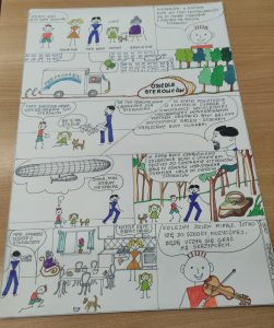 Zadaniem domowym było przygotowanie planszy komiksowej nawiązującej do Dywit – ich historii, charakterystycznych miejsc lub codziennego życia mieszkańców.