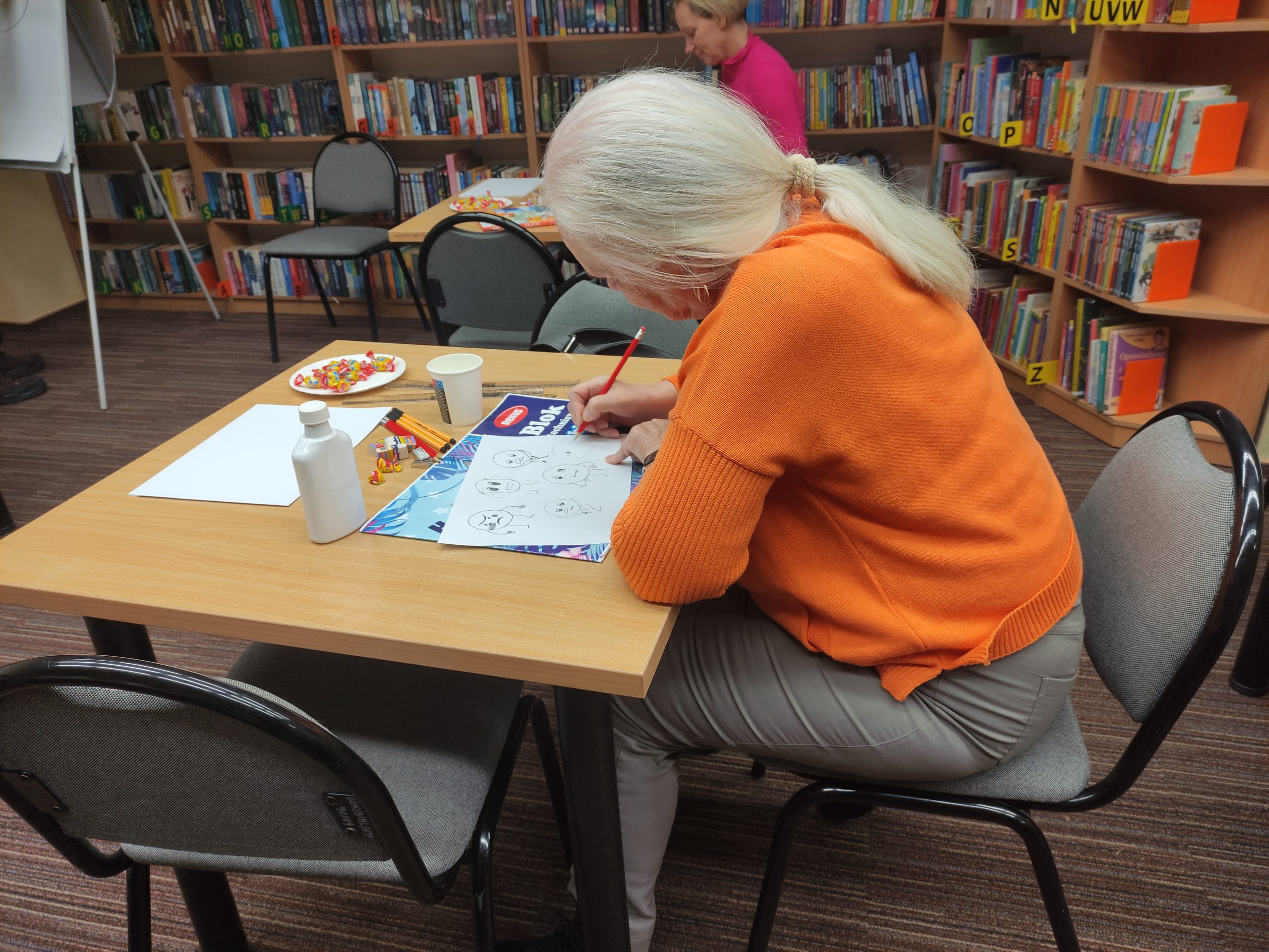 - rysowaniem postaci i oddawaniem ich emocji – różnorodność pokoleń obecnych na warsztatach sprawiła, że interpretacje emocji i pomysłów były wyjątkowo ciekawe;