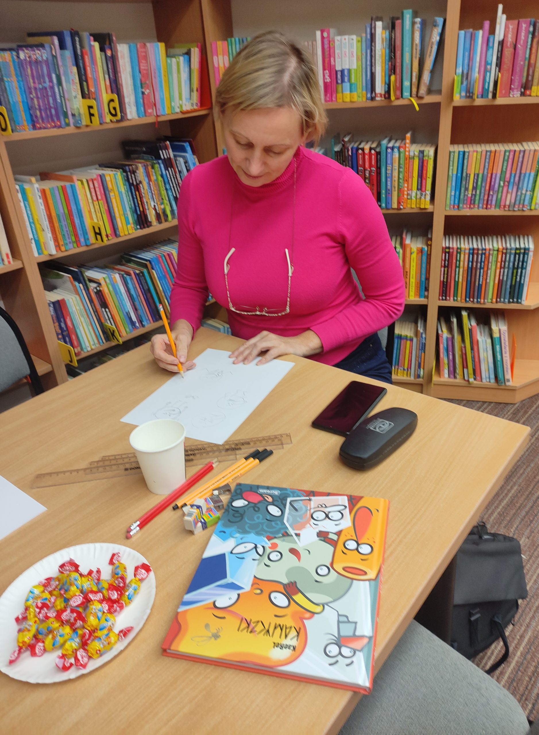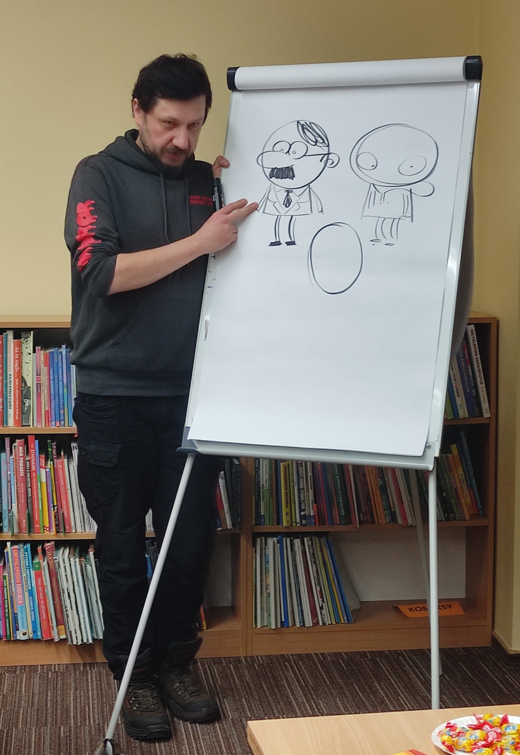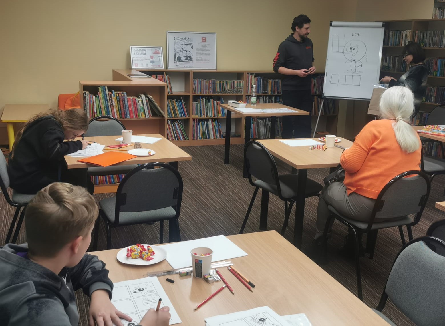 Zajęcia miały zarówno charakter edukacyjny, jak i twórczy. Prowadzący dzielił się praktycznymi wskazówkami i kulisami swojej pracy, podkreślając rolę wyobraźni oraz dbałości o detal. Uczestnicy wyszli ze spotkania z pierwszymi szkicami własnych bohaterów i głowami pełnymi nowych pomysłów.