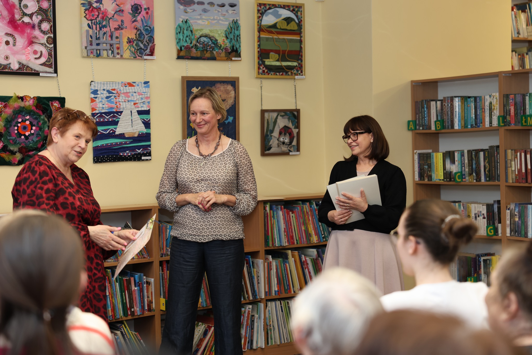 Szczególną przyjemnością było też odkrywanie wyobraźni ukrytej w drobnych formach – oglądaliśmy zakładki ze skrawkiem, przygotowane przez Joannę Kitkowską dla uczestniczek wystawy. To było inspirujące doświadczenie.